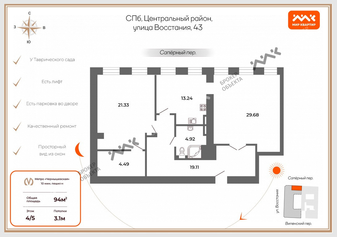 В сфере продаж элитной недвижимости работаю уже больше 13 лет. Более 300 удачно закрытых сделок и счастливых клиентов. Ежегодная аттестация в Ассоциации Риэлторов Санкт-Петербурга и Ленинградской области.